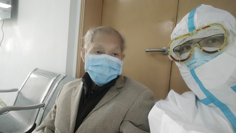 进入临床工作以后,刘伦佐认真对待每一位患者,做到详细检查并制定合理有效的诊疗方案。从最初的陌生到熟悉,刘伦佐不仅很好地适应了自己的工作,也与患者们慢慢熟悉了起来。有一天,他在病区发现一位82岁的轻度老年痴呆患者情绪很不好,也不配合治疗,经过了解才知道,这位老人非常想念独自隔离在家的老伴。刘伦佐看在眼里急在心里,每天都会和这位老人聊聊天,并联系到了老人的儿子,通过手机视频,让老人和老伴见了面,老人痊愈出院时感激地握着他的手久久不愿松开。还有一位94岁的病人,在和患者家属沟通过程中,了解到老人是一位为祖国做出卓越贡献的老军人后,从小对军人有特殊感情的刘伦佐更是细心照顾,他将配发给自己的苹果、饼干带给老人,老人吃了非常开心,紧紧握住他的手说:“谢谢医生,谢谢你们甘肃医疗队能来支援武汉,没有你们的帮助就不会有那么多的病人好转出院,这也是一场战争,你们是英雄。”老人的鼓励也让他感到振奋不已。