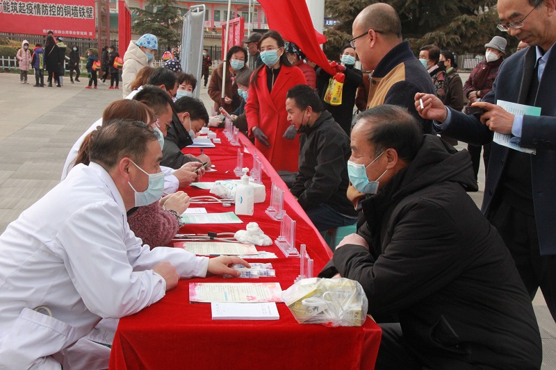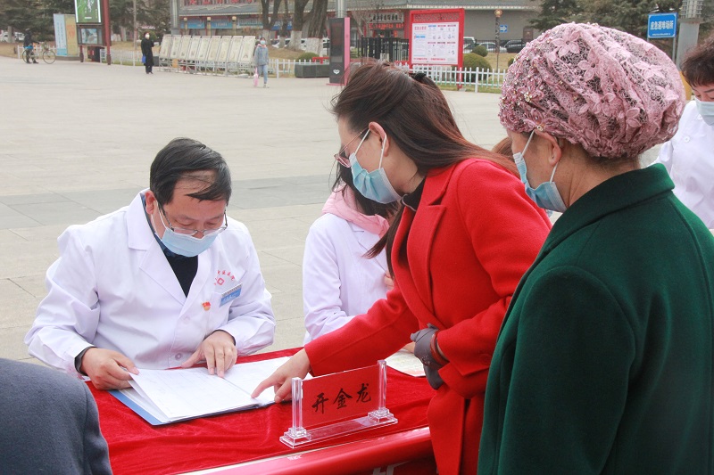 3月20日上午,在副院长胡胜根的带领下,我院内儿党支部在东湖公园门前举行专家义诊活动,来自血液病科、儿科的医护人员现场为大家测量血压、血糖,提供血液病、儿科疾病咨询,派发科普知识宣传资料。虽然天气寒冷,但是前来咨询的群众依然排起了长队,义诊200余人。