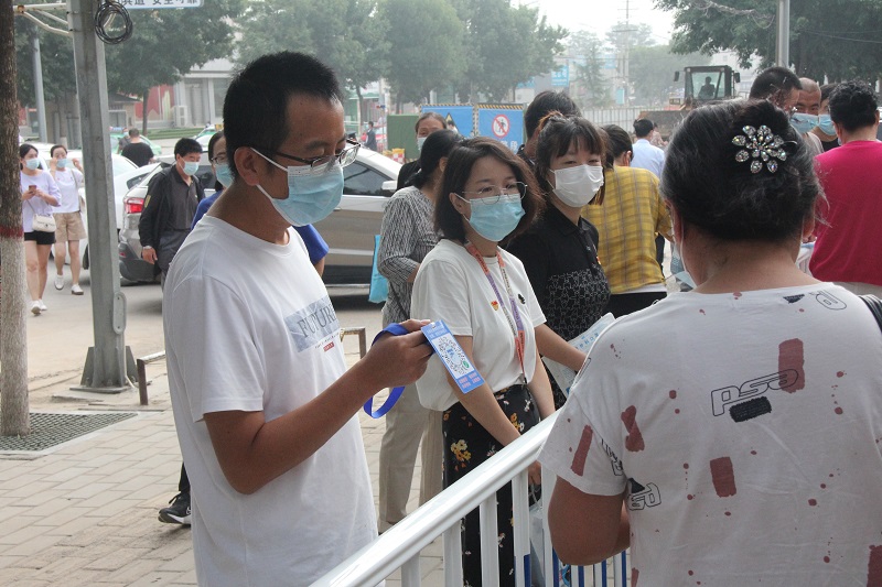上午7:30,预检分诊处就出现了党员志愿者的身影,他们提醒就诊患者佩戴口罩、测量体温、扫码(二码联查)、询问流行病学史、旅居史及个人健康状况。瞧!个别群众不会使用智能手机,行政党支部党员谢万琳没有犹豫,他走进群众中间,细心帮助其扫码、做登记;后勤党支部王亮积极维持秩序,提醒就诊患者落实“一米线”距离,李宏庚协助保安指挥疏导来院车辆有序扫码进入。