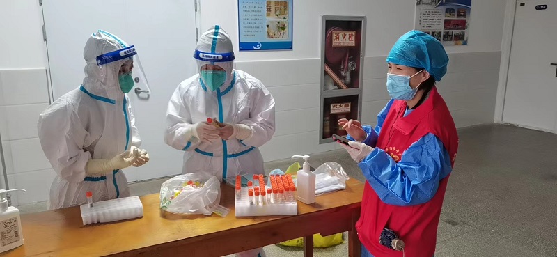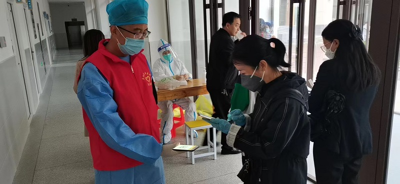 “最近面临学生开学,采样压力大,今天又是九一八事变的纪念日,我希望党员同志能在这个关头站出来,为疫情防控出一份力……”朱明霞同志号召大家时这样说。9月19日,后勤支部又组织8名党员再次奔赴实验小学配合核酸采样工作。而朱明霞同志更是经常性主动参与到医院疫情防控工作中,随时关注采样动态,人手紧缺时第一时间驰援。