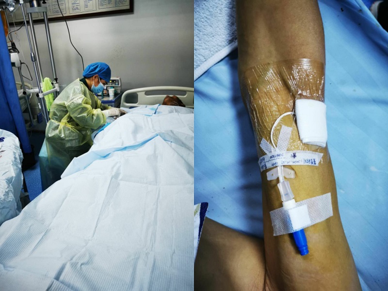10月27日,市中医医院重症医学科张海燕护士长成功为一名患者穿刺中线导管。