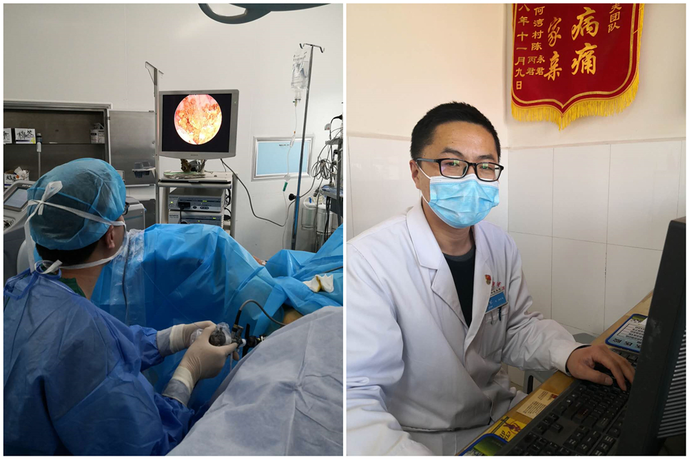 患者男性,72岁,因排尿困难伴尿痛半年来院就诊,经B超检查,诊断为前列腺增生症、膀胱结石。主管医生孙海军通过详细询问,发现患者曾有不规则血尿病史,而且反复出现,持续时间较短。细心的孙海军决定再对患者进行一次膀胱镜检查,结果发现患者膀胱有一直径约2.0cm大小结石,还在膀胱的右侧后壁发现两处大小约0.6cm和0.5cm的菜花样病灶,带蒂、呈珊瑚样,色鲜红,诊断为膀胱肿瘤。后经和患者沟通,在全麻下行经尿道膀胱结石钬激光碎石术、膀胱肿瘤电切术,手术历时1小时,顺利粉碎结石,而且将两处肿瘤一并彻底切除。