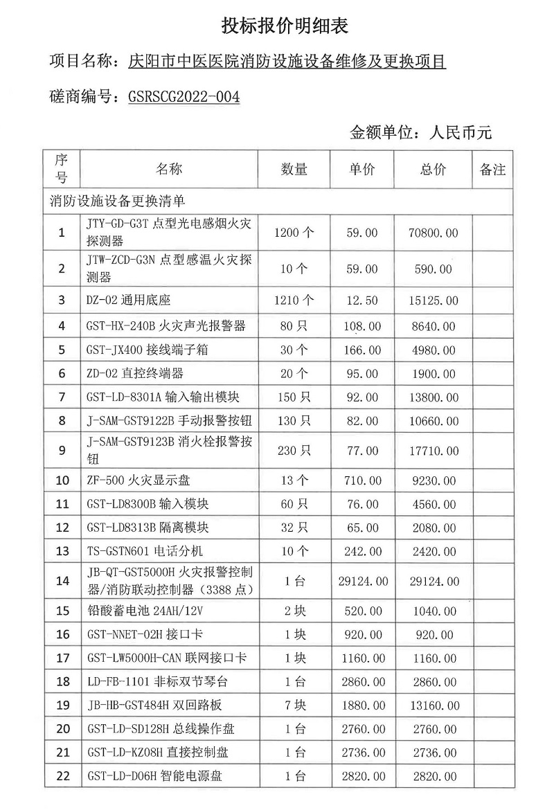 庆阳市中医医院消防设施设备维修及更换项目