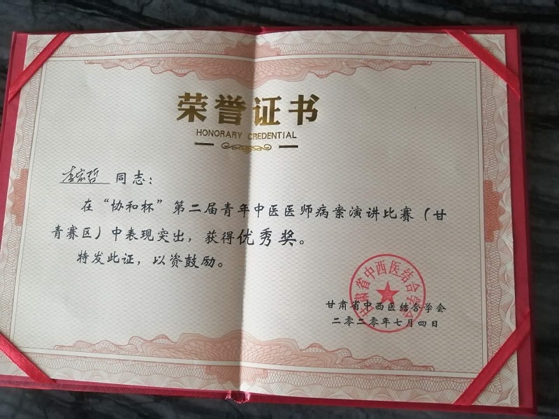 7月4日,第二届“协和杯”青年中医医师病案演讲活动(甘青赛区)在兰州举办,我院脾胃肝胆病科青年医师李宏哲在王正国主任医师全程指导下,经过两个月精心准备,在比赛中表现突出,获得优秀奖。