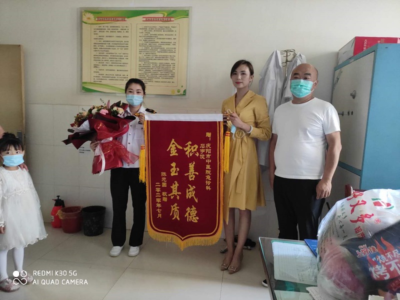 7月29日下午,市中医医院急诊科收到了市民陈女士和丈夫送来的一面锦旗,上面写着“积善成德,金玉其质”,和锦旗一块送来的还有一束鲜花,陈女士和丈夫特别前来感谢的是急诊科以及急诊科护士石宇佼。