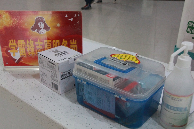 门诊大厅导医台的旁边,一件鲜艳的红马甲格外亮眼,一名志愿者正在为前来咨询的群众指导如何进行线上挂号。这里是市中医医院设置的雷锋志愿者服务站,能够为群众提供针线、胶水、雨伞等便民小物品,还可以为老年体弱、行动不便的患者提供轮椅、平车等服务。
