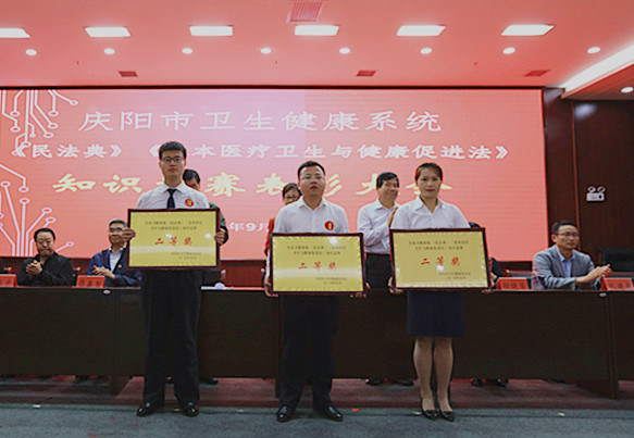 9月18日,市卫健委在市第二人民医院举办了庆阳市卫生健康系统《民法典》《基本医疗卫生与健康促进法》知识竞赛。在副院长张鑫智的带领下,由公卫科彭欣、药剂科谢万琳、办公室陈博组成参赛队,经过激烈角逐,总成绩列第二名,荣获集体二等奖。谢万琳获优秀个人奖。