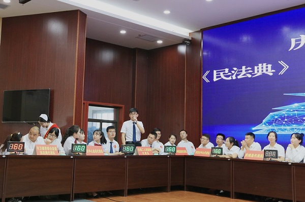 此次知识竞赛共有来自市直及县区的17支代表队参赛,竞赛分为必答、抢答和风险答题三个环节,内容包含《民法典》《基本医疗卫生与健康促进法》的各个方面,现场各队选手踊跃答题,气氛热烈。