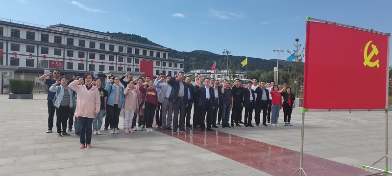 在纪念馆广场太白起义纪念碑前,院党委书记闫庆荣、党委委员、院长程同心、党委委员高琪、党委委员、副院长张鑫智分别代表两批党员向革命先烈敬献花篮,全体党员面向党旗,庄严宣誓,重温入党誓词。