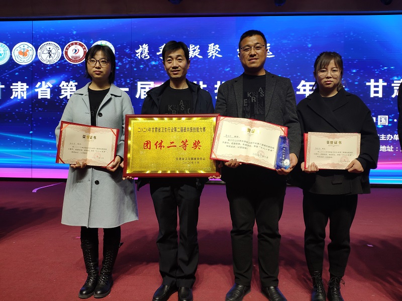 10月30日到31日,由甘肃省卫生健康委员会主办,甘肃省医学放射专业委员会、兰州大学第二医院核磁共振科组织承办的甘肃省卫生行业第二届磁共振技能大赛在兰州举行,在刘文军主任医师的带领下,我院放射科团队以总分第九名的成绩荣获“团体二等奖”,主治医师常伟东以全省第五名的成绩荣获“个人一等奖”,主治医师陈灵芝获“个人二等奖”,磁共振技师李丹丹获“个人三等奖”。