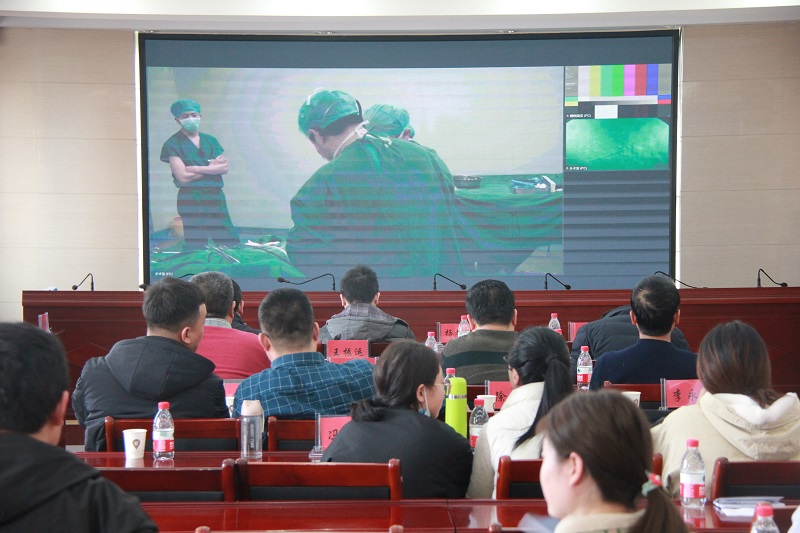 甘肃省人民医院泌尿外一科李恒平副主任医师为我院一名65岁女性患者,进行了腹腔镜下右侧肾上腺瘤切除手术,全程通过视频连线的形式,在多媒体会议室进行同步演示,并开展了膀胱软镜检查演示和无痛膀胱镜检查培训。