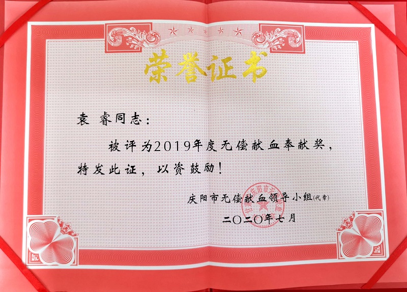 此次表彰中,庆阳市获“全国无偿献血先进市”称号,1名个人和3个单位获无偿献血促进奖。