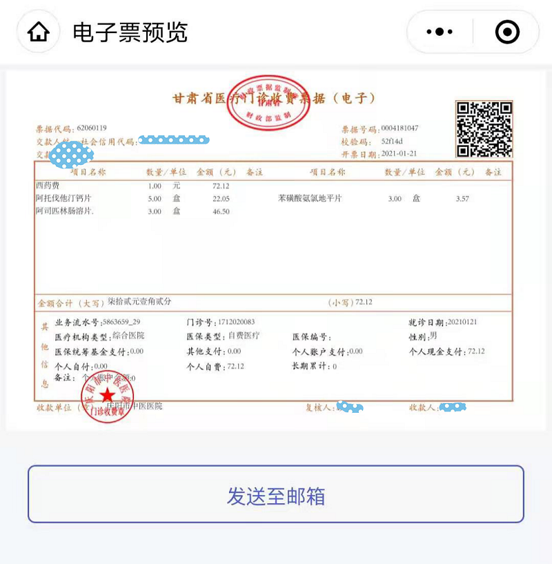 医疗收费电子票据是以数字电文形式表现的无纸化财政票据,具有和纸质医疗收费票据相同的法律效力。患者通过市中医医院微信公众号、电子票夹小程序可随时查看收费电子票据,可缩短业务办理时间,减少票据打印核对等环节的人员接触。