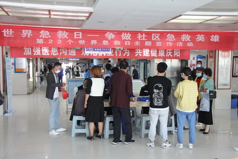 9月11日是第22个世界急救日,今年的主题为“做学校社区的急救英雄”,今天上午,我院急诊科在医院门诊大厅组织开展了主题宣传活动。