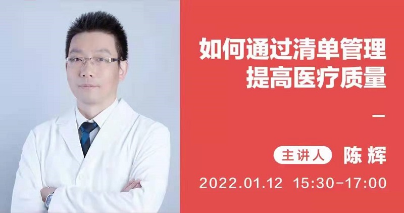 本次管理能力提升培训班共包含13堂视频直播课程,由我院在课程库中自主选择适应医院发展实际、有助于提升管理能力的课程进行观学习。1月12日下午,北京积水潭医院疾控处及院感处处长、烧伤科副主任医师陈辉主讲了《如何通过清单管理提高医疗质量》,后续每月将选择1至2堂课程学习。