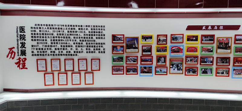 市中医医院院史馆为2012年医院整体搬迁时修建,位于医院综合楼6楼东侧,面积400余平方米,建成后迅速成为医院对外交流、展示形象的重要基地,也是来院参观学习考察的必到之地。历经10年,医院发展日新月异,院史馆个别展板出现破损掉落、发黄等现象,也缺失了医院高速发展的近十年史,亟待更新。经过修缮改造,院史馆必将成为医院回顾历史、传承文化的重要窗口,对于提升医院的对外形象意义重大。