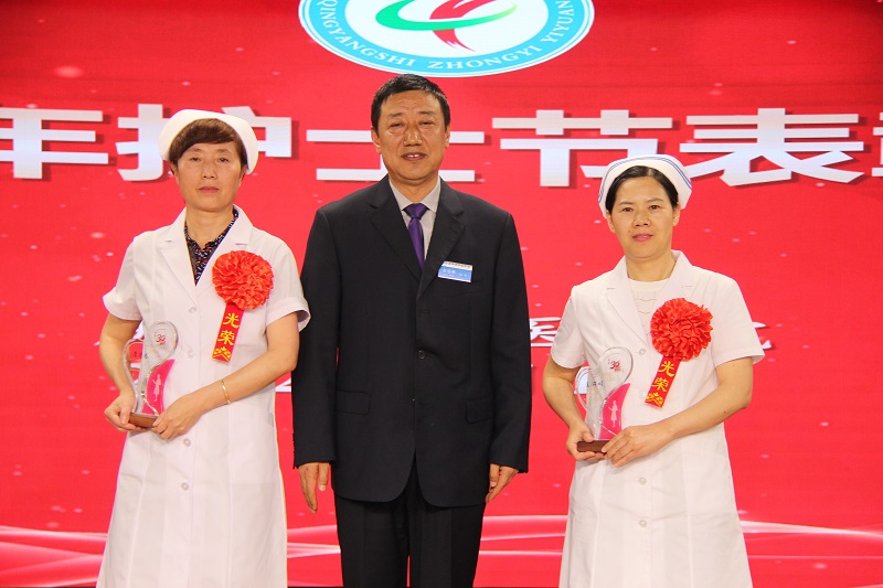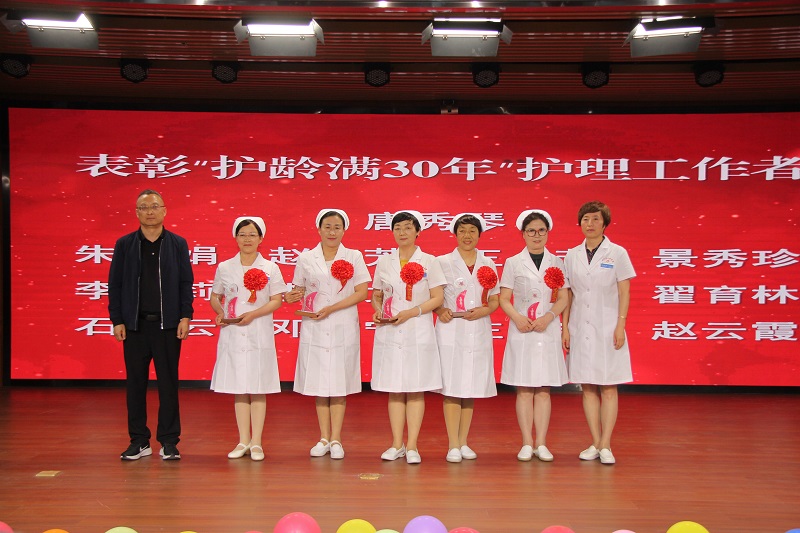 副院长胡胜根宣读省、市卫生健康委通报表扬决定,全院共计2个护理单元,10名护理人员受到表彰。