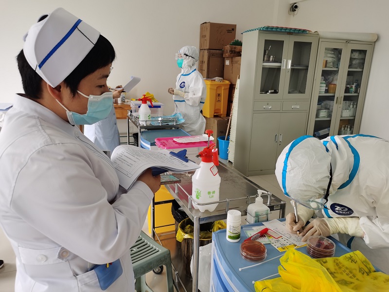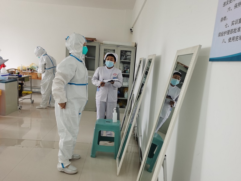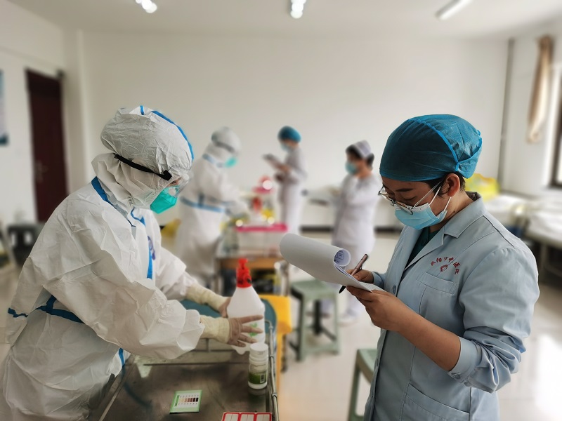 5月26日举行了院感防控知识竞赛,全院共有42名医护人员参加,竞赛内容涉及院感相关法律法规、标准、指南及新冠肺炎疫情防控相关知识,选出竞赛前10名进行技能竞赛。5月30日举行的院感防控技能竞赛内容包括穿脱防护服、消毒效果监测、医疗废物处置、消毒液配置等。最终选取综合成绩排名前三的刘靓、贺苗苗、张海云参加全市的院感防控知识和技能竞赛。
