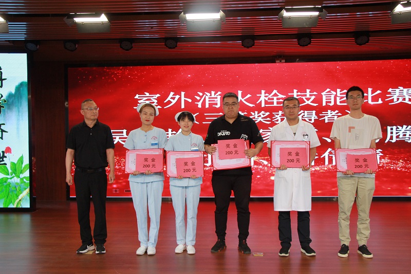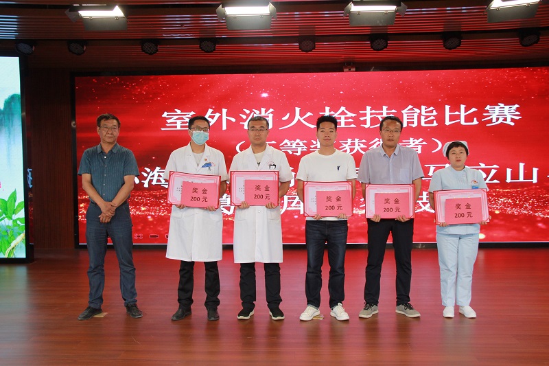 关于表彰2022年“安全生产月”室外消火栓技能比赛获奖个人的决定》,9组18名优胜选手获得表彰奖励,院领导为获奖选手颁奖。全体参会人员还共同观看了专题片《学习习近平总书记关于安全生产重要论述》《国务院安全生产十五条措施》、安全警示教育片和2022年医院“安全生产月”系列活动纪实片。