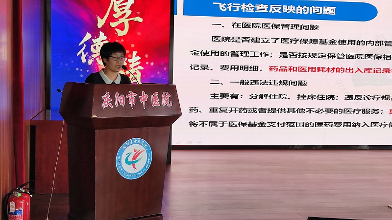 段小莉主任医师重点围绕医保飞检工作,对飞检政策依据、检查清单、既往典型案例、临床医疗服务易违规问题等进行了详细讲解,指出了具体违规问题,分析了原因,并提出了防范整改措施。副院长王少飞就医保飞检的重要意义、问题整改、申诉方法等方面着重进行了强调。