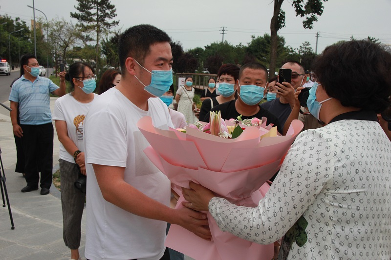 8月15日下午,庆阳市支援兰州核酸检测队圆满完成支援任务平安归来,我院检验科4名队员载誉而归。下午4点,在海绵运动公园举行欢迎仪式,市委常委、宣传部长宋树红,市卫健委党组书记、主任邓莉娟,党组成员、副主任张伟,我院副院长胡胜根到场迎接。