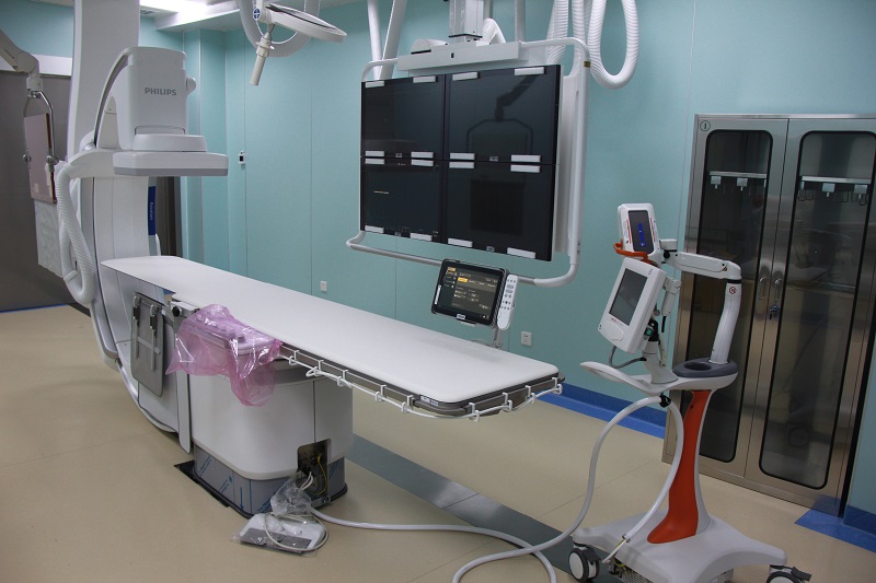 介入医学科负责人冯永刚汇报科室筹建情况。市中医医院介入医学科位于住院部一楼东侧,设置标准介入手术间、操作室、办公室、谈话间、更衣室及耗材库房等。安装荷兰西门子公司最新款超大平板数字减影血管造影系统( Azurion 7M20 ),并配备心电监护仪、ACT、除颤仪、有创压检测等配套系统。全套系统纯原装进口,具有辐射低、操控性强,图像质量好等优势,可支持开展多种微创介入手术。科室暂有医师3名,其中副高级职称1名、中级职称2名,专业护理人员1名,技师1名,主要开展外周血管、肿瘤、心脏的介入诊疗项目,后续将派专人赴上级医院进修学习神经内科的介入治疗技术。
