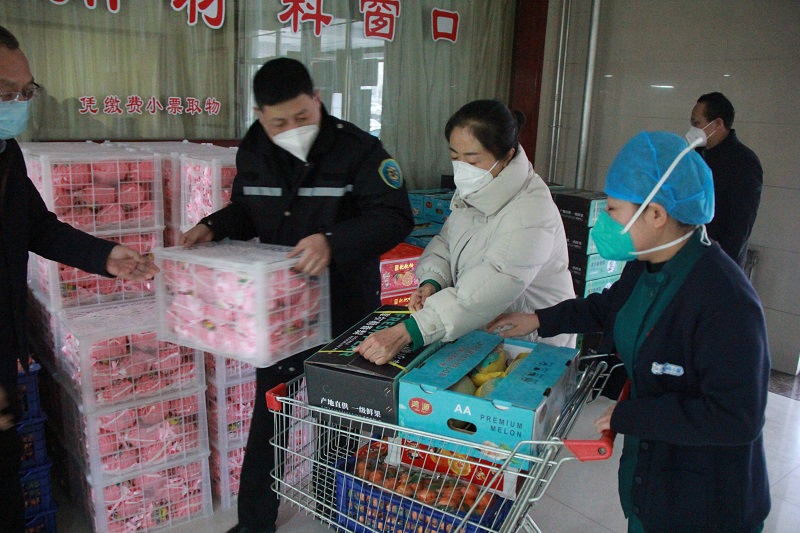 上午八点半,住院部一楼大厅格外热闹,值班值守的医护人员推着小推车在这里集结,不同的是这次不再是忙碌地运送药品耗材,而是接收医院的关怀和甜蜜。在院党委书记、院长袁岳鹏,副院长胡胜根、朱明霞、李栋、开金龙的组织下,一箱箱春节慰问水果被大家搬回了科室。这一延续多年的传统,旨在让春节期间值班值守人员在可以在工作空档,感受到医院的温暖。