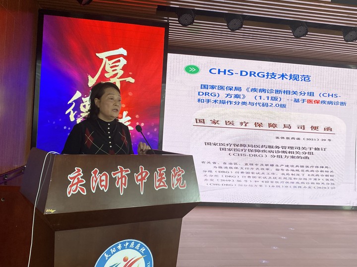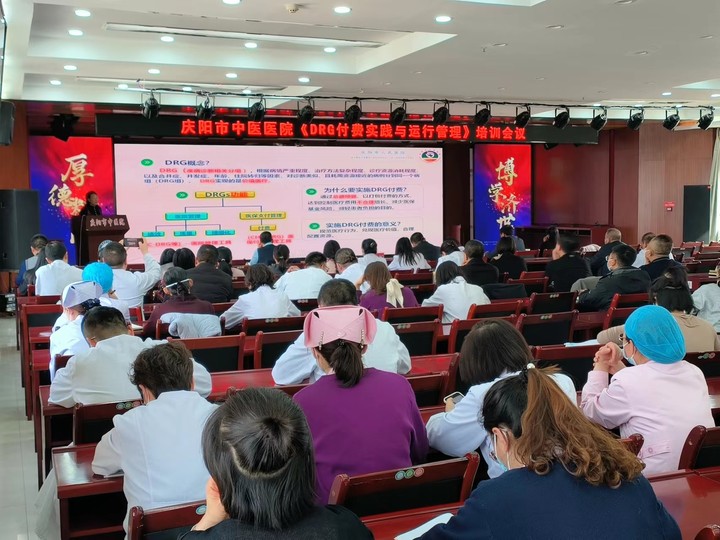 为贯彻落实党中央、国务院健康中国战略目标,深化医药卫生体制改革,促进公立医院高质量发展,推动医保支付方式改革向纵深发展,2023年3月1日下午,市中医医院举办了“DRG付费实践与运行管理”培训会,特邀庆阳市DRG付费首席专家、庆阳市人民医院医保办主任屈锦秀授课。副院长王少飞主持,院班子成员、行政管理科室及临床科室共计150余人参加培训。
