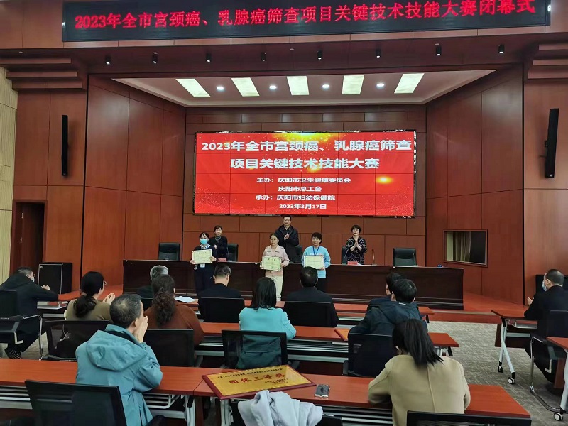 2023年全市宫颈癌、乳腺癌筛查项目关键技术技能大赛由市卫健委、市总工会主办,市妇幼保健院承办,旨在进一步提高医务人员专业技术水平,提高宫颈癌、乳腺癌早诊早治率。市级参赛队(分别参加宫颈细胞及组织病理组、妇科临床及阴道镜检查组、乳腺CBE及超产评估组、乳腺X线检查组)及各县区参赛队(分别参加宫颈细胞及组织病理组、妇科临床及阴道镜检查组、乳腺CBE及超产评估组)共35名队员参赛。竞赛内容涉及宫颈细胞及组织病理、妇科临床及阴道镜检查、乳腺CBE及超声评估、乳腺X线检查等相关政策文件、技术方案、专业基础知识、操作技能及诊断能力等。