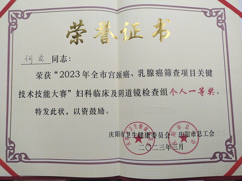 3月17日,在2023年全市宫颈癌、乳腺癌筛查项目关键技术技能大赛中,我院代表队表现优异,摘得“团体一等奖”、妇科临床及阴道镜检查组“个人一等奖”、宫颈细胞及组织病理组“个人二等奖”等多个奖项。