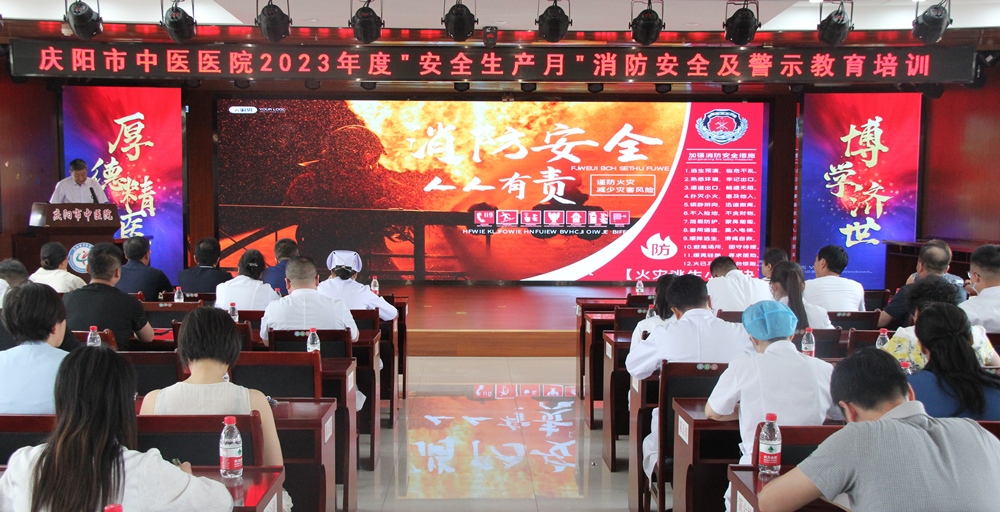 - 为增强全院广大职工的消防安全防范意识,掌握消防安全知识,落实消防安全责任,进一步提高医院消防安全应急能力,6月15日下午,市中医医院组织开展“安全生产月”消防知识及警示教育培训和消防应急演练活动。 消防知识及警示教育培训邀请庆阳市消防救援支队防火监督科