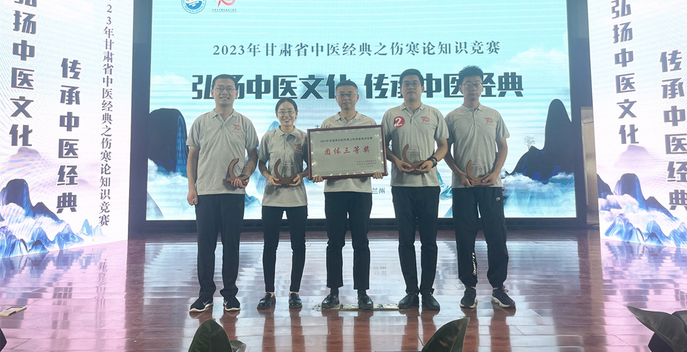 - 7月1日至2日,我院四名优秀青年医师张震钰、李宏哲、刘飘飘、杨博在科教科贺建勋带领下,代表庆阳市赴兰州参加了由省卫生健康委、省中医药管理局主办,省中医院承办的“中医经典之伤寒论知识竞赛”,最终取得团体三等奖的好成绩,张震钰、刘飘飘获个人三等奖,李宏哲、杨博获个人优秀奖。