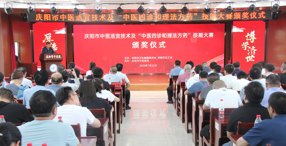 - 7月22日,庆阳市中医适宜技术及“中医四诊和理法方药”技能大赛在经过为期三天的集中培训和比赛角逐后,顺利落下帷幕。22日下午举行颁奖仪式,市卫生健康委党组成员、副主任刘小伟出席并讲话,市总工会职工技术协作委员会办公室副主任路冰宣读大赛表彰决定,市中医医院党委书记、院长袁岳鹏主持