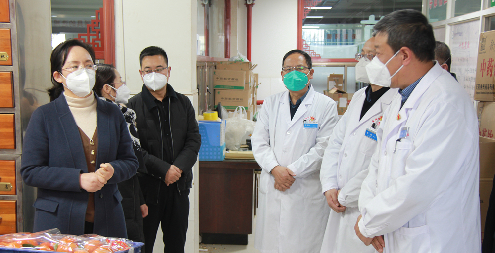 - 12月21日下午,市卫健委党组成员、副主任戴彩燕来我院看望一线医务人员。 戴彩燕指出,中医药和中医院的医务工作者在近三年的抗疫工作中发挥了重要作用,贡献了重要力量。近期