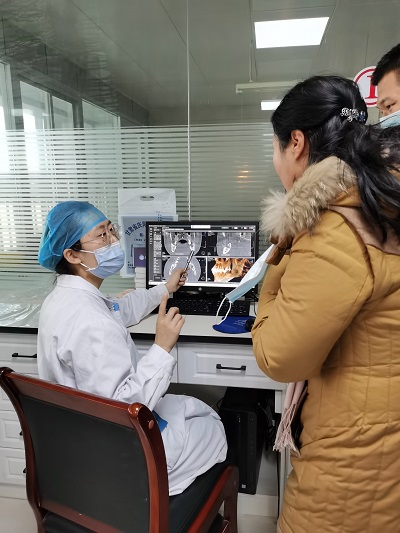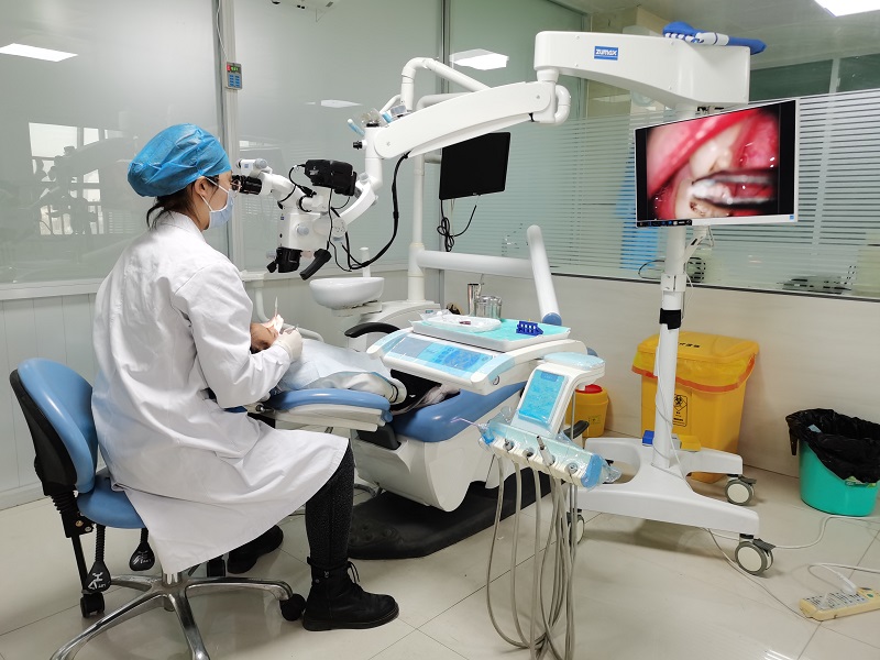 口腔科的治疗属于很细致的过程,2020年年底接诊的一例患者,牙体缺损严重,根尖发炎程度较深,在其他医院及诊所诊断均建议拔除患牙,但患者身体耐受不了拔牙手术。来我院口腔科就诊后,张倩在显微镜下,为患者进行根尖脓肿清创术及根管治疗,全程用时四个小时,最终为患者保留了患牙。