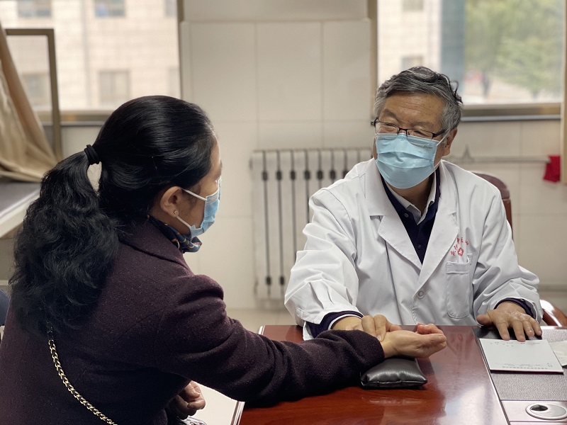 门诊三楼名医堂南侧第二间诊室的门口总是人头攒动,熙熙攘攘,等待就诊的患者排起了长队,大家时不时伸长脖子焦急地向诊室里张望。诊室里,一位年逾七旬、头发花白的老者正在一丝不苟地为患者把脉问诊、对症开方,他就是受人敬仰的