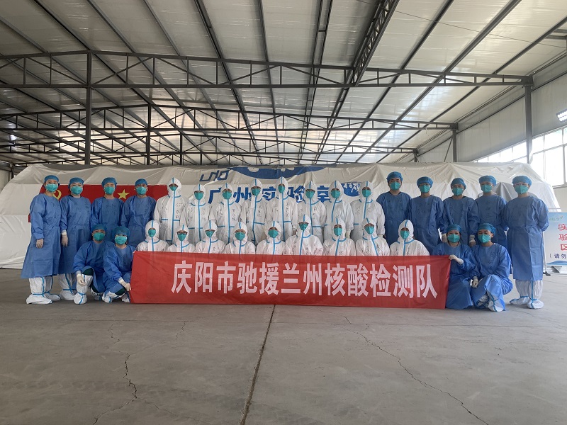 刚到兰州,安宁区硬气膜实验室还在组建,我们一边协助安装仪器,一边分批进入金域检验公司方舱实验室进行核酸检测工作。7月19日,我们30人的队伍加入硬气膜实验室的检测队伍,硬气膜实验室里面有十三台核酸提取仪,38台核酸扩增仪,涉及的品牌有四五种,这就要求我们要以最快的速度学会每一台仪器的操作并进入工作状态。经过一个晚上10个小时紧张的工作,我们队伍无差错地完成了12000管核酸标本的检测和上传工作,打响了进入硬气膜实验室的“第一战”。